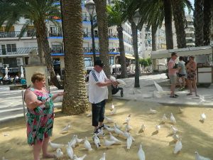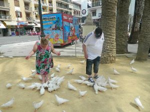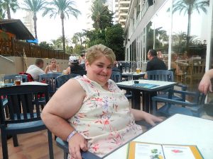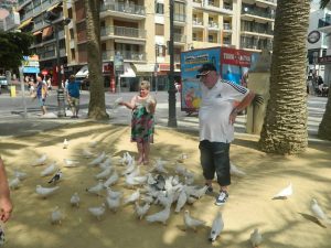 September 26, 2017Marie and I went to Benidorm on the 5th of September and got up really early and drove to Cardiff airport. We flew at 6am in the morning got to Benidorm at 9.30 it was really hot. Got to the hotel at 12 midday ready for lunch. Robin and I enjoyed our lunch. After lunch we all went up to our room to unpack. Later we went and had a look around the hotel and sat around the pool and went for a swim and soaked up the sun. in the evening we stayed in the hotel and had a drink of non alcoholic cocktail and enjoyed the entertainment by the pool, they put on Mama Mia in Spanish, it was very good indeed we all enjoyed it very much.next day we spent most of the day by the pool. In the evening we went to Morgans bar that’s well known as Neptune’s bar, we really enjoyed and Marie had a dance with staff. Next day we went to the water park and enjoyed, we travelled by bus there and back. Next day we went to the old town in Benidorm and Marie and I fed the birds, they all came from every where all over us on our head,arms and feet it was funny! Next day spent the day around the pool soaking up the sun and having a swim. Later we got ready to go out had an evening meal and then watched the entertainment in the hotel. The next day got up had breakfast then went to a another water park and really enjoyed, we came back to hotel and relaxed by the pool and had a couple of drinks before going up to the room. We got ready to go out, and on our last night we had evening meal and went to watch the entertainment rock band, they played very good music. We went up to our room early because we were up early next day, Marie and staff were dancing on our balcony!